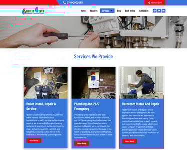 Clean, modern design: A straightforward layout that clearly presents their plumbing and heating services, making everything easy to find.